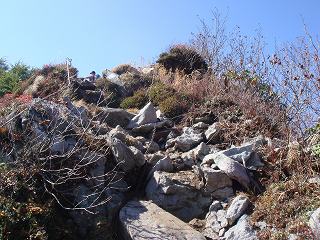 三角点の奥にある最後の急斜面にも クサリがありますが、ここも難しくありません。