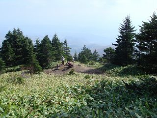 長野県側の山頂に行ってみたら、菅平のダボス牧場から 次々に登山者が登って来て、