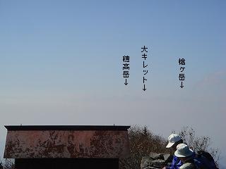 群馬県側の頂からは、社の上に 奥穂高岳から槍ヶ岳の稜線が見えました。