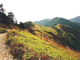 _____(大菩薩の稜線)___________(標高2000米地点に立つ標柱)