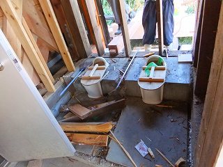 今回の改修工事は トイレをバイオにする工事だそうで、その間は 山小屋の横にある