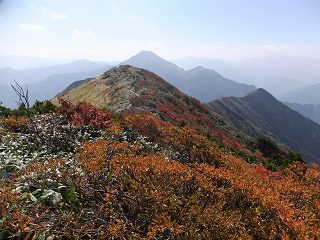 駒の小屋から20分登って稜線に出た所が 中ノ岳の分岐で、ここから右に行った所が