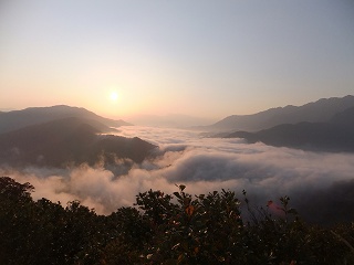 6時7分に朝日が昇ると、谷間に 美しい雲海が広がっていました。
