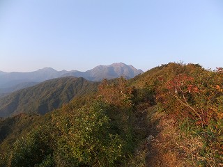 _(明神峠付近から見た越後駒ヶ岳)_______(振り返って見た稜線の登山道)