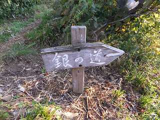 登山口から20分歩いた所に観音様の石像が立っていて、すぐ先に 銀の道の道標があり