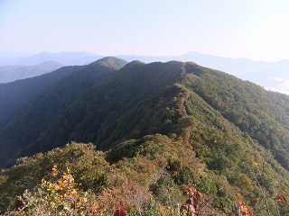 トイレの裏にある登山道から アップダウンの少ない快適な稜線の登山道を歩きます。