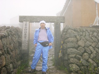 リフト上駅から2時間ほどで月山の山頂に着きましたが、山頂は 霧に包まれていました。