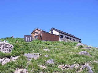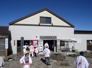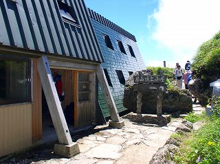 山頂から1時間ほど下りた所にある仏生池小屋では 沢山の参拝者が休憩をしていました。