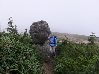 玉子石は 土台の岩の上に1.7メートルぐらいの玉子型の岩が載っているもので、山渓の