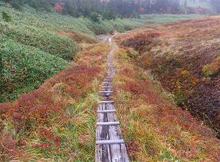 ___(山頂の手前にある木道)_____________(平ヶ岳の山頂)