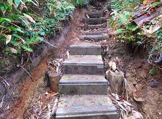 ___(傾斜が緩くなった登山道)__________(段差の大きい登山道)