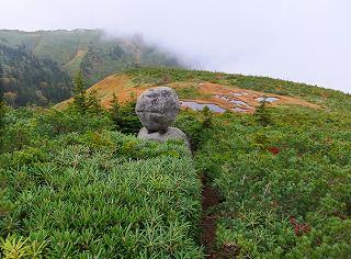 山頂が横たわり、分岐から右を見ると 玉子石に行く登山道がありました。