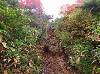 やがて 登山道の周りに笹が多くなると、 笹の茎が邪魔をしている所がありました。