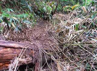 ___(笹が多くなった登山道)_______(笹の茎が下に向かって伸びています)