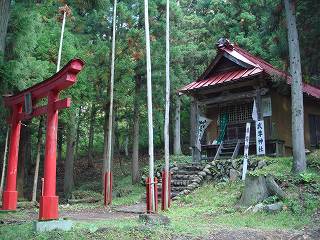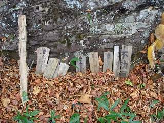 ロープ場から20分ほど登った所に 不動明王や山伏相撲優勝者と書かれた札が並んでいて、