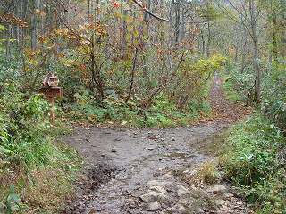 ___(登山口付近の登山道)_____________(登山道を横切る沢)