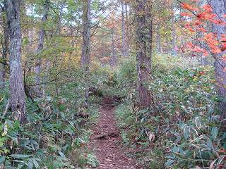 先ほどの稜線に戻って 武尊山の山頂に向かうと、手小屋沢から上の登山道は さらに木の