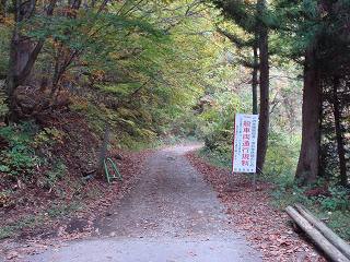 (武尊神社の横にある通行規制の立て看板)______(林道の駐車スペース)