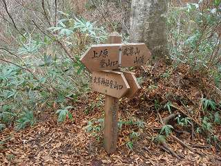 _(分岐、真っ直ぐ行くと剣ヶ峰山)__________(分岐に立つ道標)