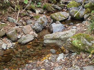 (避難小屋の横に流れている沢)