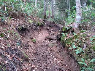 ___(木の根が出た登山道)_____________(深く削れた登山道)