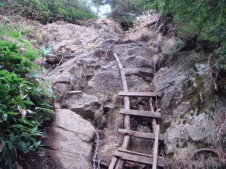 ___(最初の岩場にあるハシゴ)_________(振り返って見たクサリ場)