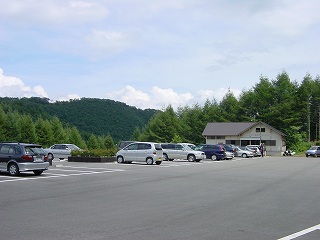 (東俣駐車場、奥が休憩小屋)