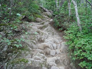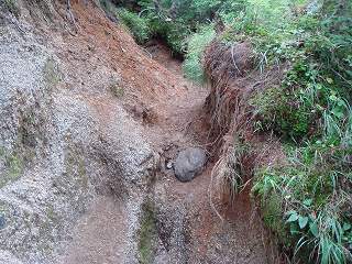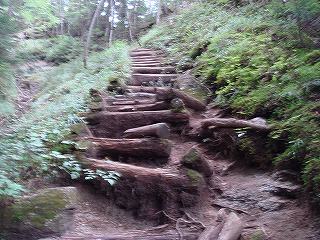 _____(階段の登山道)_____________(深くえぐれた登山道)