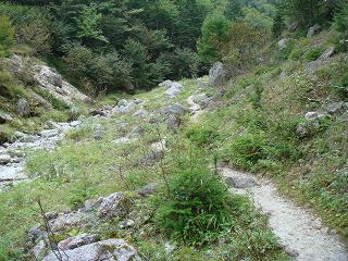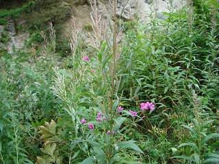 ____(沢に沿った登山道)________-(花のピークを越えていたヤナギラン)
