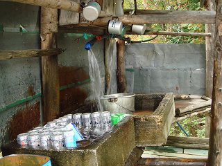 鳳凰小屋の庭には沢山のテーブルがあって、その横に 自由に使える水場があります。