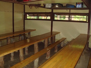 奥にある建物は宿泊専用棟のようで、中を覗いてみたら 2段になった寝床がありました。