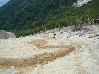 出発してから30分ほどで砂地の登山道になりますが、砂地の斜面は足元が安定しない
