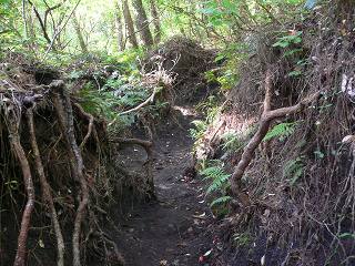 (深く削れた登山道)