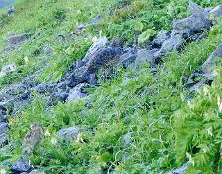 前回は、この急登で かわいい子を連れた雷鳥の親子に出会いました。