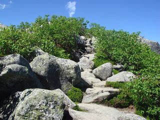 ここから快適なハイマツ帯の中を歩いた先に 大きな岩が散乱した所があって・・