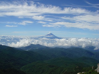 山頂は360度の眺望で 富士山から時計回りに 毛無山・ 聖岳・ 赤石岳 ・悪沢岳・ 塩見岳・