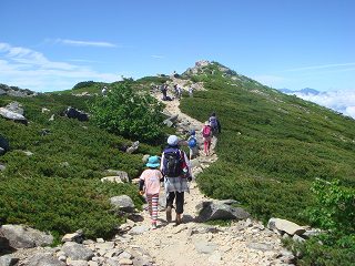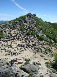 ____(快適な稜線の登山道)__________(大きな岩が散乱する登山道)