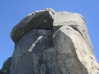 山頂から西に下りた所に 金峰山のシンボルの五丈石(いわ)があります。