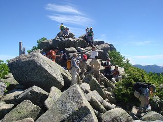 _(山頂に立つ日本百名山の標識)____________(2002年の山頂)