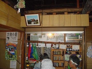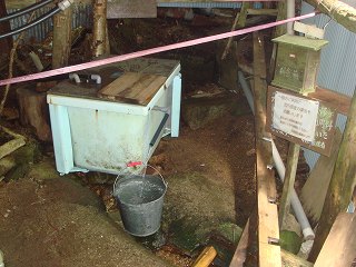 山小屋は平屋建で 中もそれほど広くなく、奥にある水場では 100円で水を汲めます。