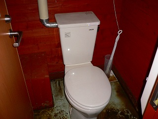 _(左奥がトイレで、右が避難小屋)_______(登山靴でも使いやすい洋式便器)