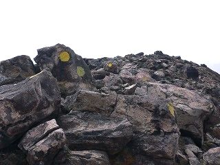 この登山道には これでもかというほど沢山の黄色いペンキの印が付いていました。