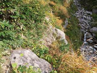 ___(痩せた トラバース道)________(右下を流れる沢を見ると高さが分かる)