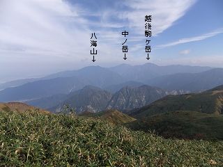 越後駒ヶ岳・ 武尊山・ 朝日岳・ 谷川岳・ 仙ノ倉山・ 苗場山・ 妙高山・ 火打山が見えました。