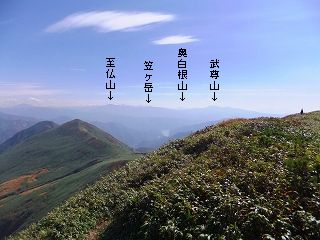 稜線からは 平ヶ岳・ 燧ヶ岳・ 至仏山・ 奥白根山・ 武尊山・ 谷川岳が見えました。