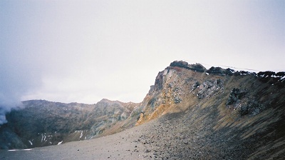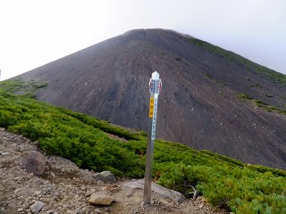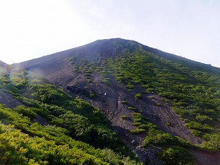 (八合目の上から見た火口と山頂)