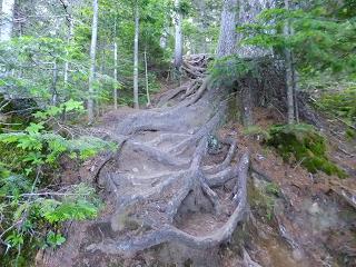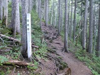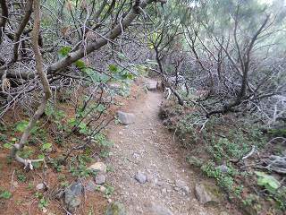 (背の高いハイマツの中の登山道)