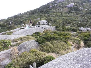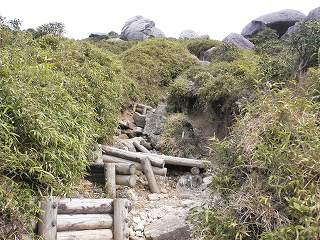 ___(投石岳を巻く登山道)___________(巻き道から見た宮之浦岳)
