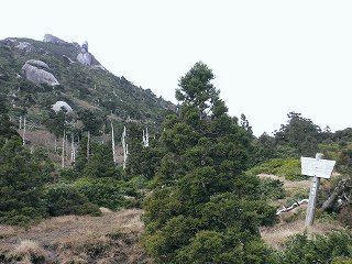 宮之浦岳から15分下りた所が 永田岳と新高塚小屋に行く道に分かれる焼野三叉路で、