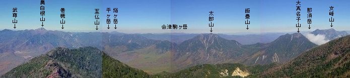 | (男体山の山頂から見た景色、肉眼では 飯豊山の右奥に朝日岳も見えました) |